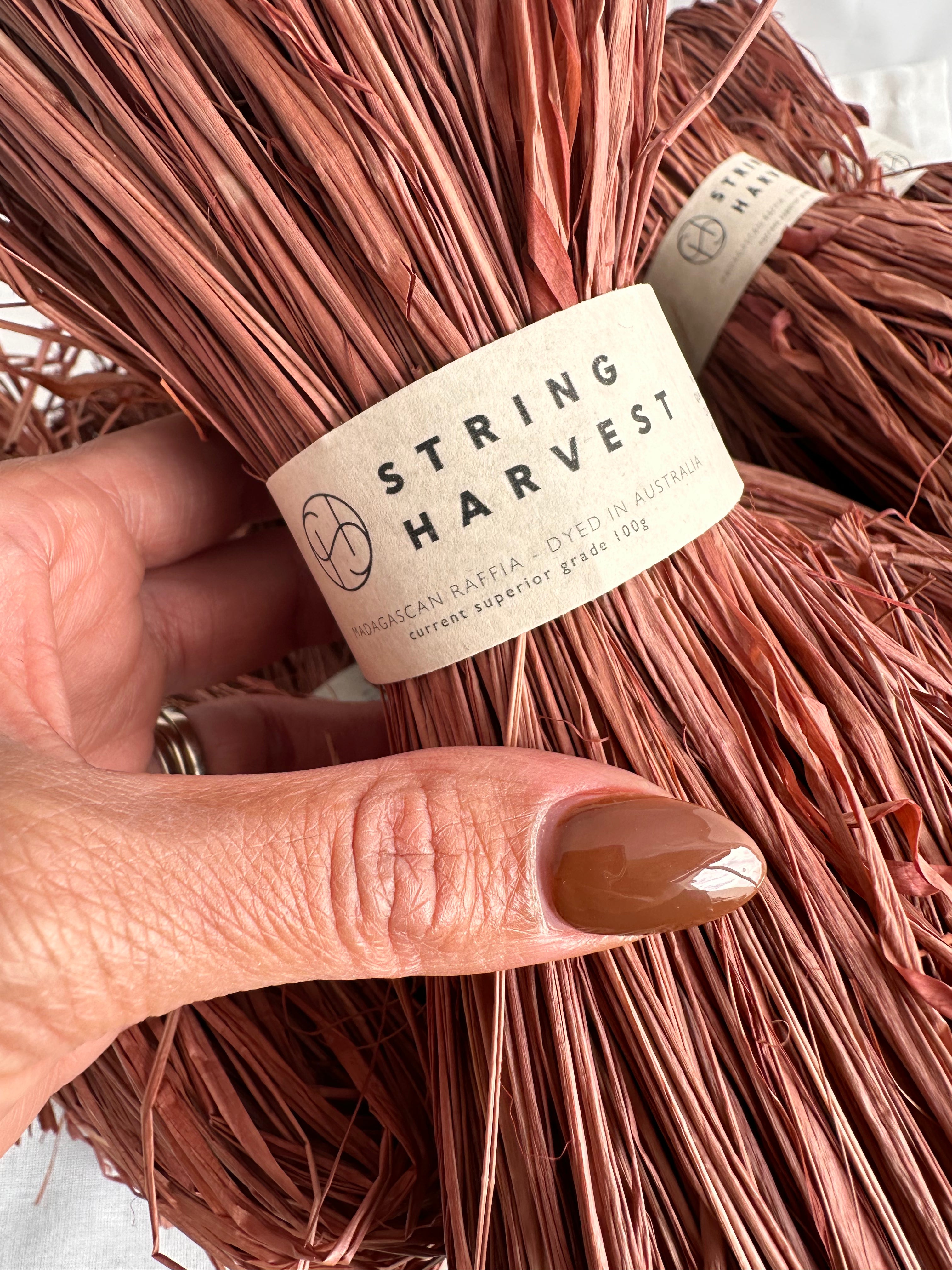 Hand-dyed locally in-house at our Narrabeen studio, the String Harvest coloured raffia range is a fundamental staple of our store.